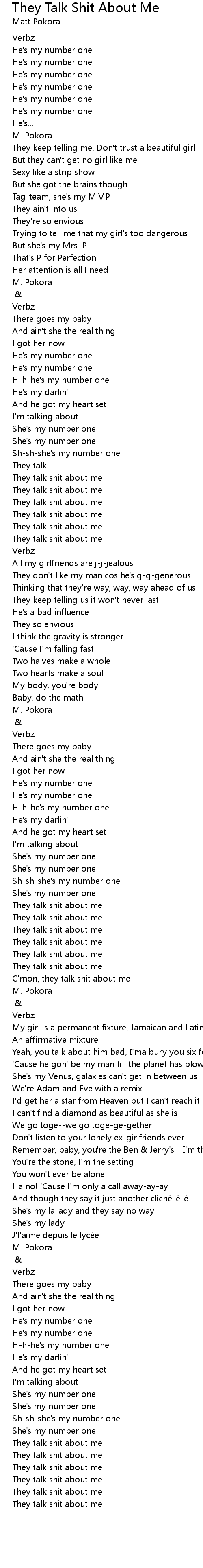 | 歌曲 | They Talk Shit About Me |
