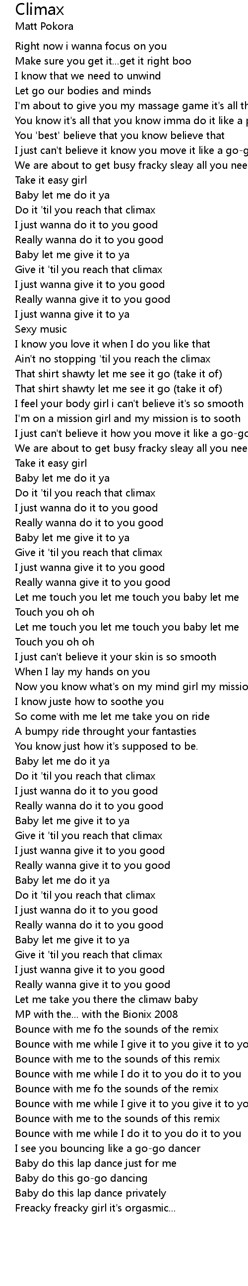 Do it 'til you reach that climax |