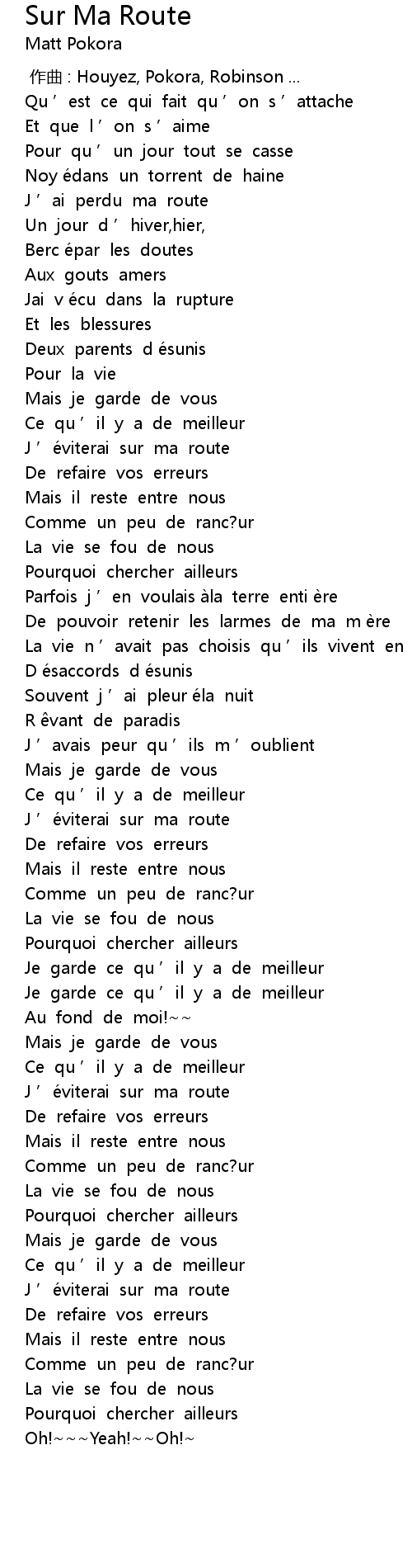 | [00:00.00] | zuo qu : Houyez, Pokora, Robinson ... |