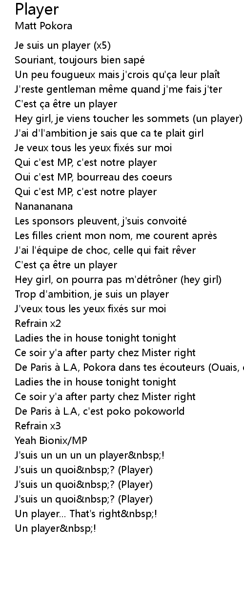 | J' suis un un un un player nbsp! | |