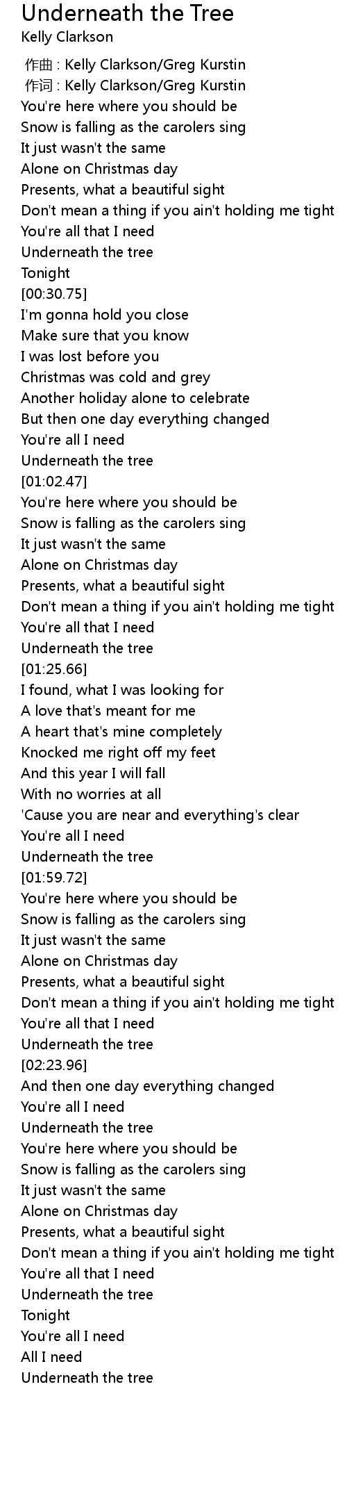 | [00:01.00] | zuò cí : Kelly Clarkson Greg Kurstin |