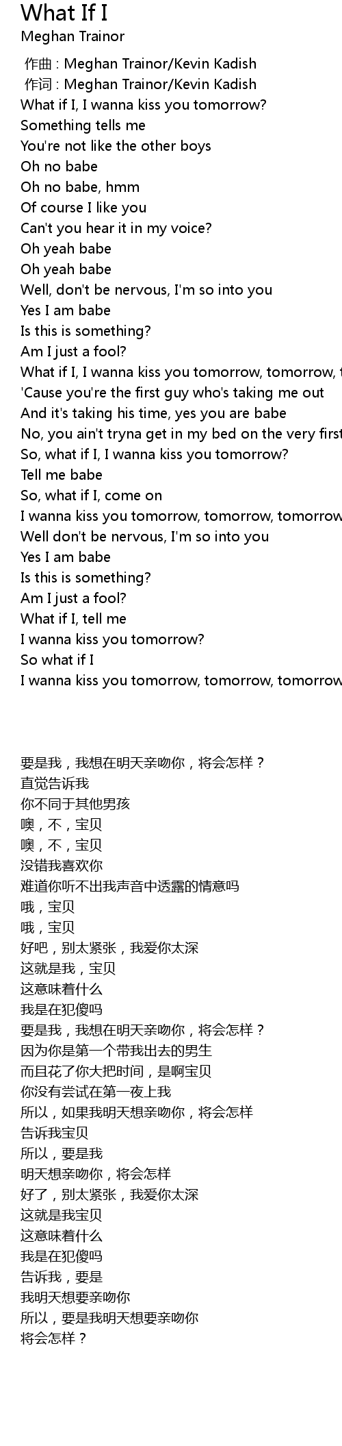 | [01:45.60] | So, what if I, I wanna kiss you tomorrow? |