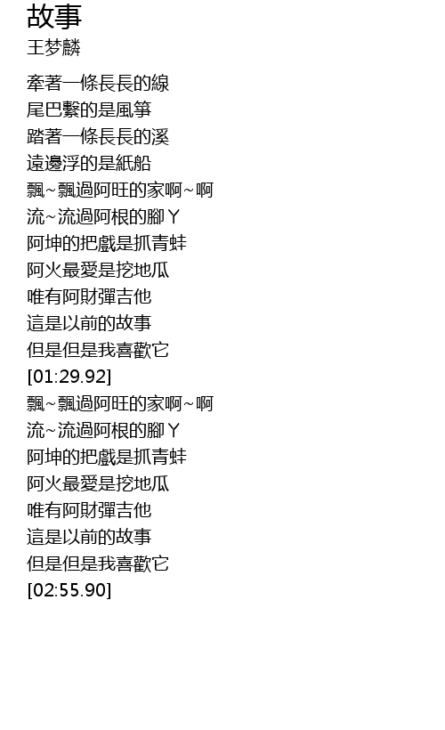 | [02:46.35] | zhè shì yǐ qián de gù shì |