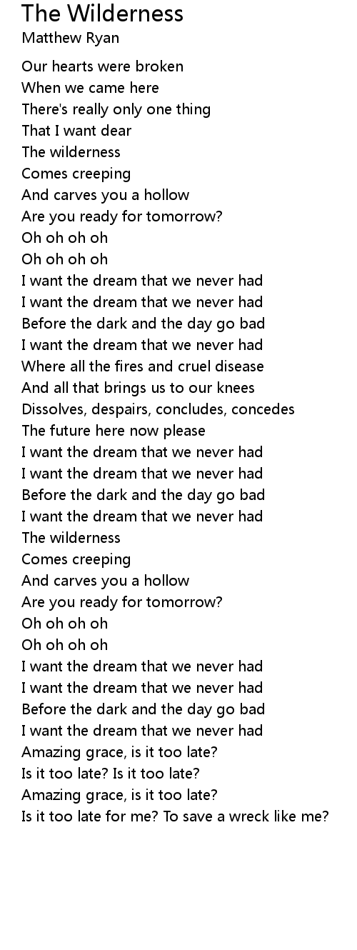Is it too late for me? To save a wreck like me? |