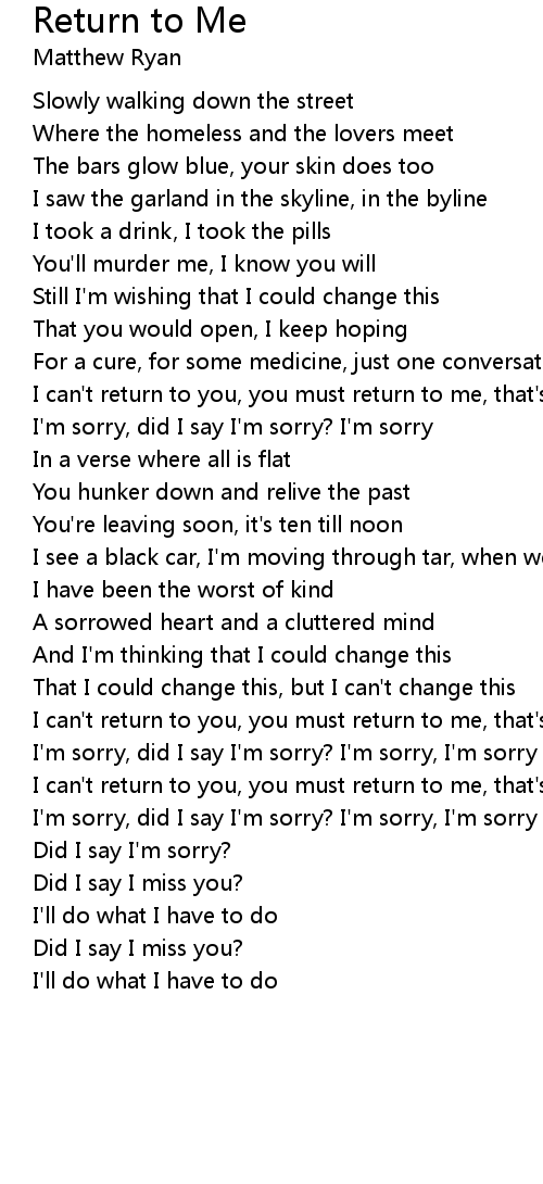 I can't return to you, you must return to me, that's the deal |