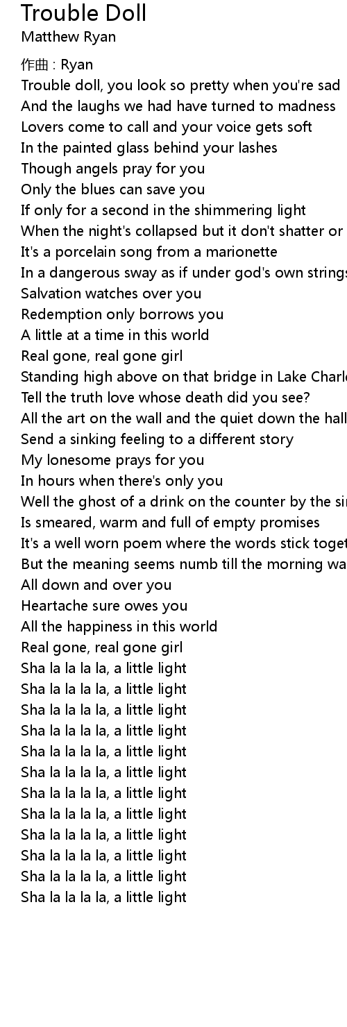 | Trouble doll, you look so pretty when you' re sad | |