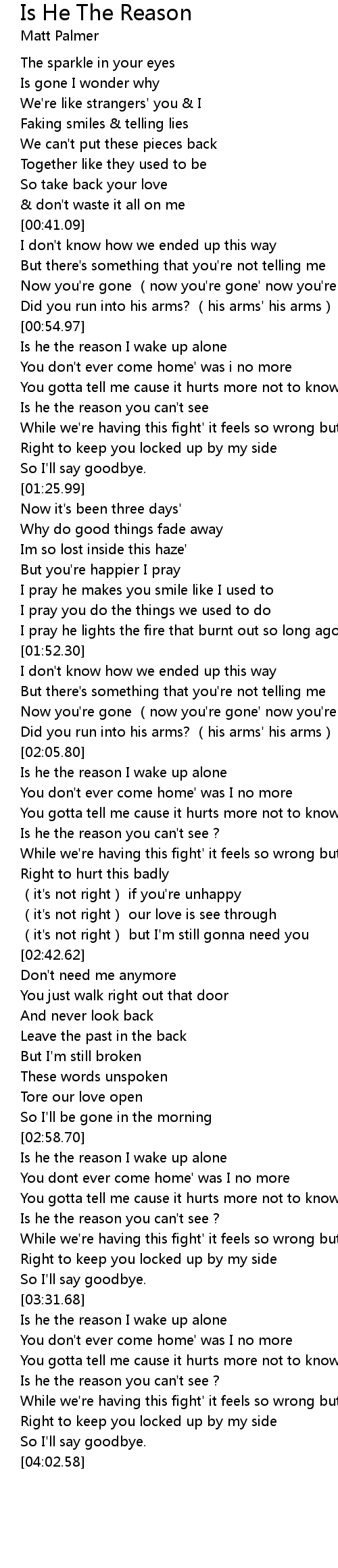 | [03:10.29] | You gotta tell me cause it hurts more not to know oh ohh |