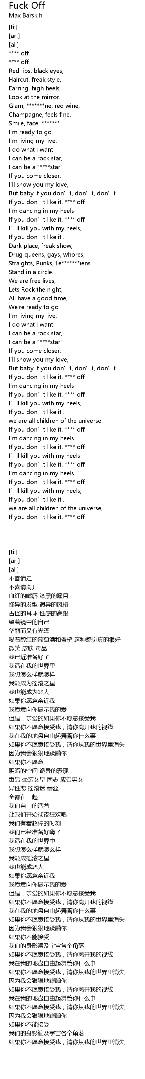 | [01:25.60] | Straights, Punks, Le*******iens |