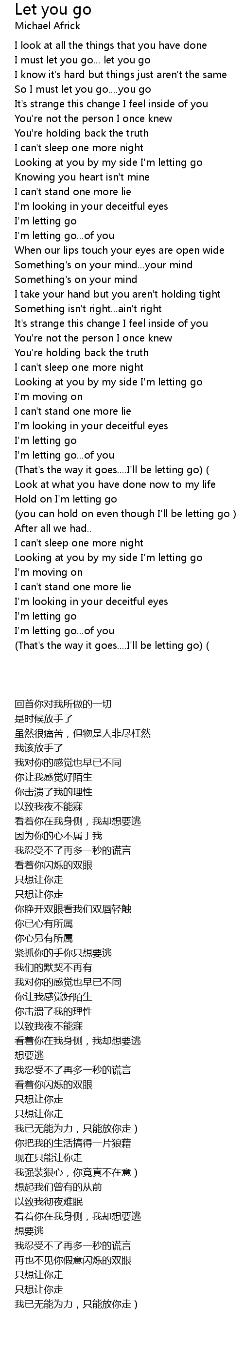 | [02:49.57] | Looking at you by my side I'm letting go |