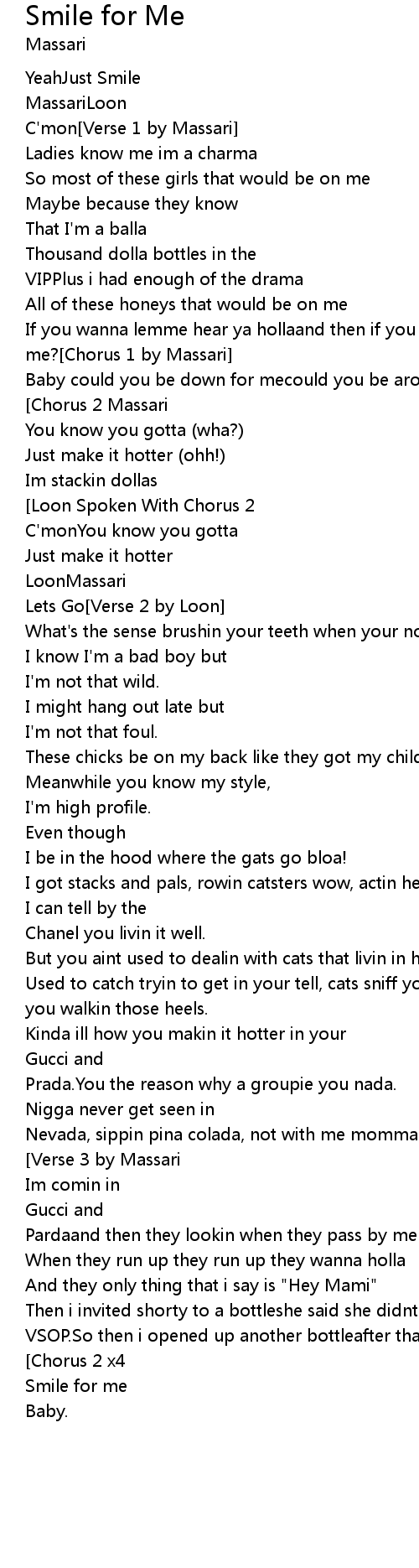 | It really don't matter ohh you gotta just smile for me. [x2][Chorus 2 Massari] | |