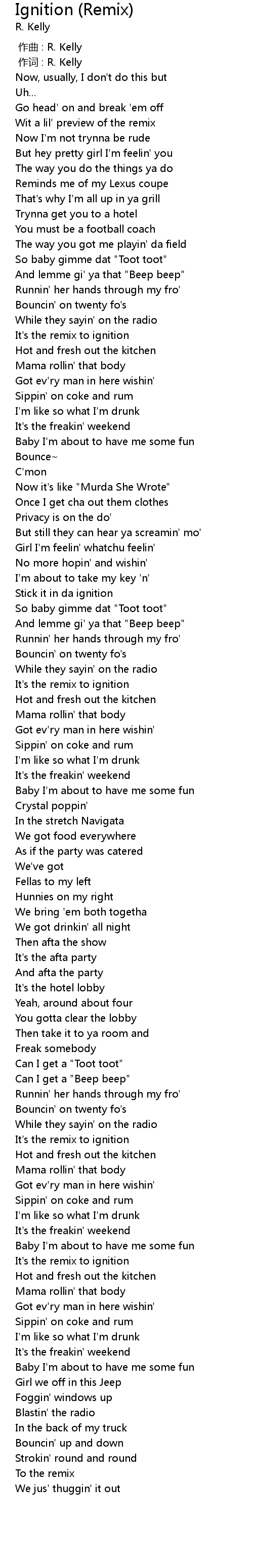 | [00:21.32] | So baby gimme dat "Toot toot" |