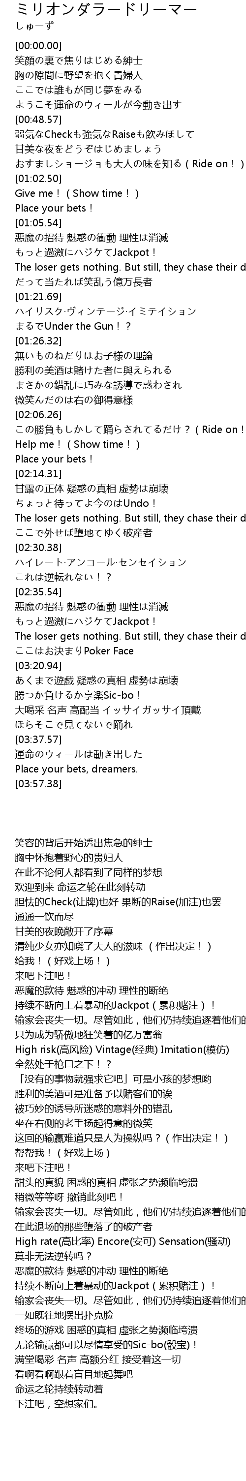 | [03:27.12] | 勝つか負けるか享楽Sic-bo! |