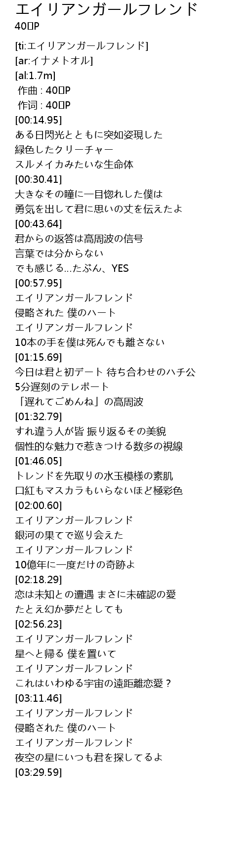 | [00:44.04] | 君からの返答は高周波の信号 |