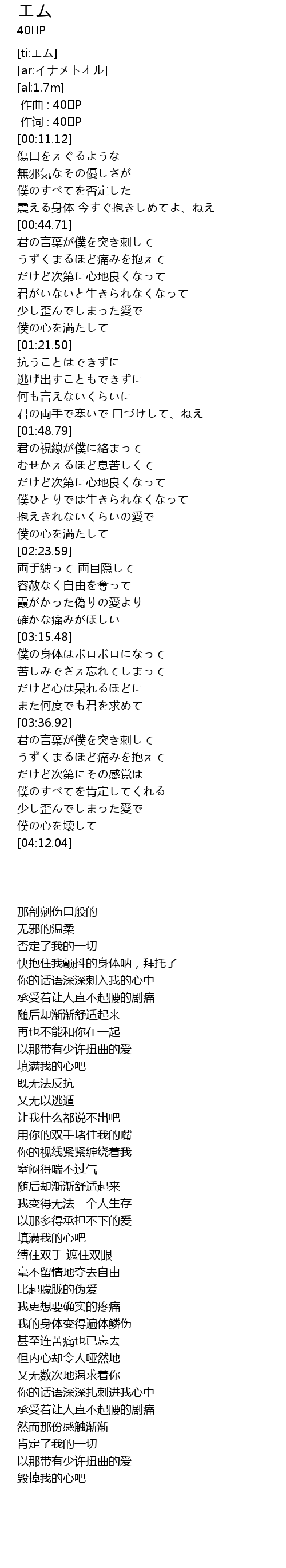 | [00:01.00] | 作词 : 40㍍P |