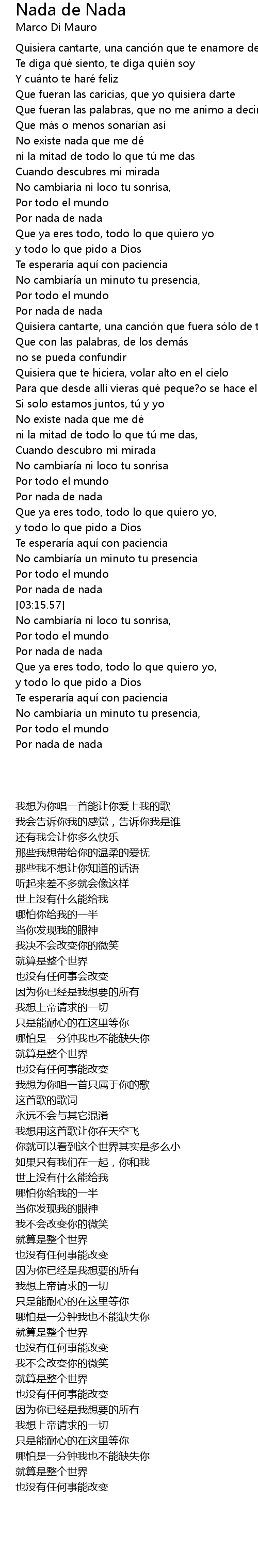 | [01:42.49] | Quisiera cantarte, una cancio n que fuera so lo de ti |
