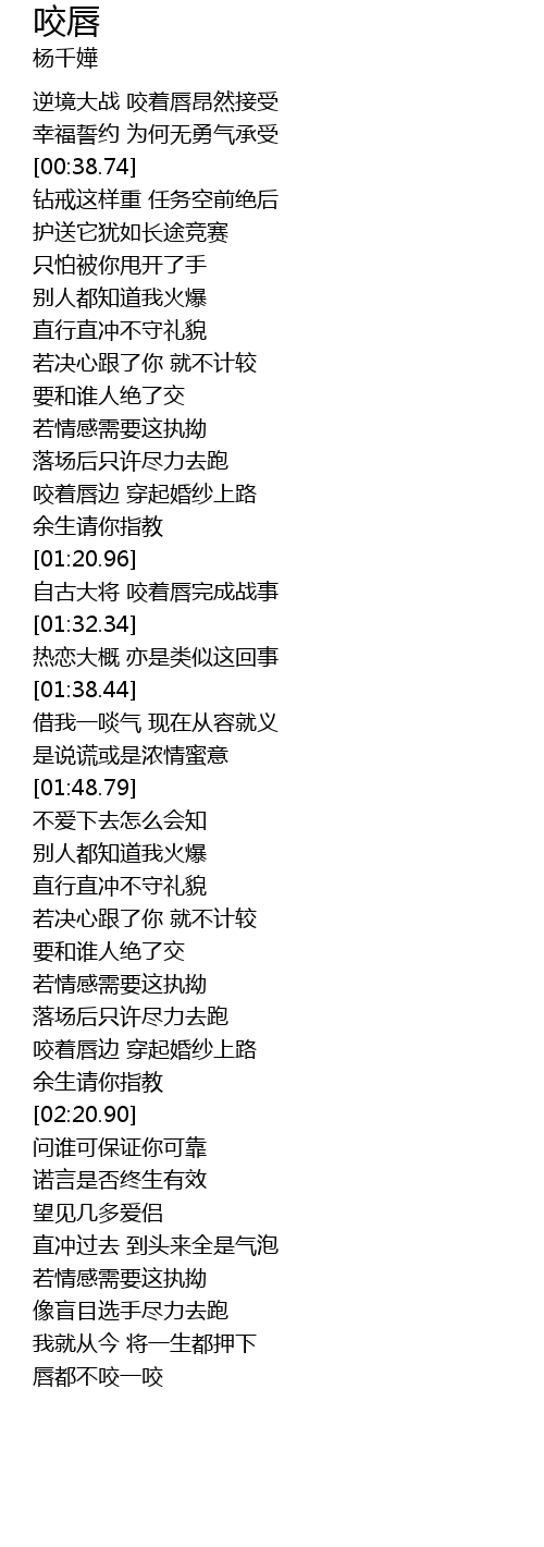 | [01:11.40] | 咬着唇边 穿起婚纱上路 |