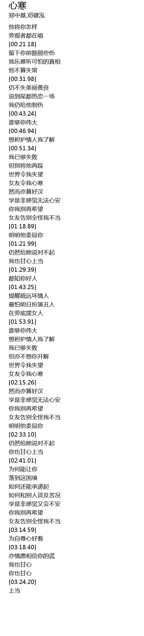 | [02:12.21] | nǚ yǒu lìng wǒ xīn hán |