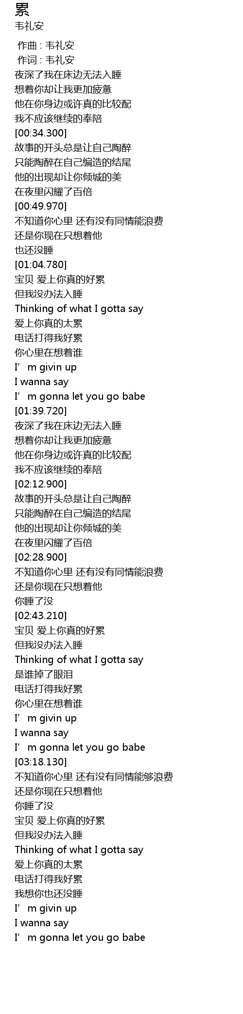 | [03:33.380] | 宝贝 爱上你真的好累 |