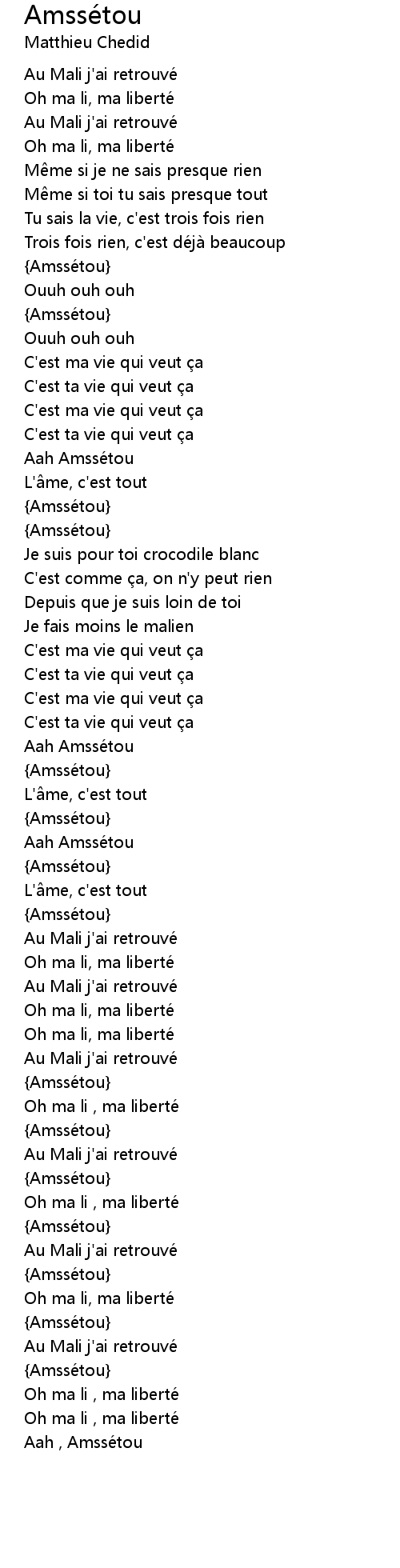 | 歌曲 | Amssétou |