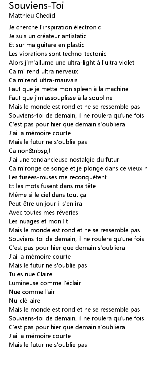 | Ca m'ronge ce songe et je plonge dans ce vieux murmure | |