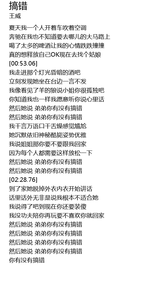| [03:20.06] | 然后她说 弟弟你有没有搞错 |