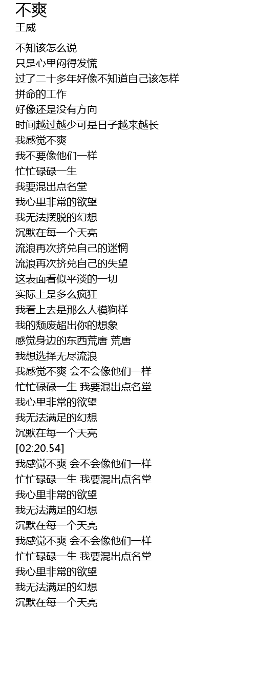 | [00:50.14] | 我感觉不爽 |