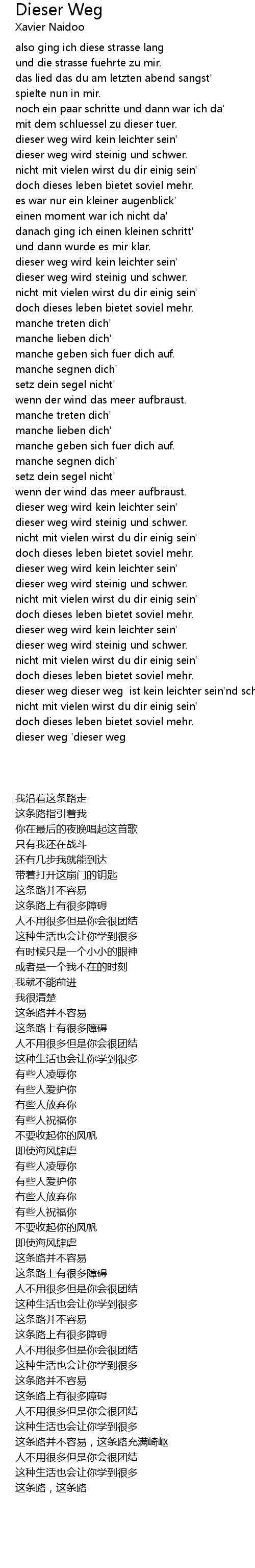 dieser weg dieser weg ist kein leichter sein'nd schwer. |
