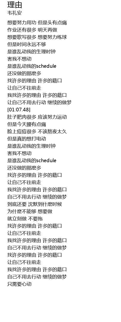 | [01:56.75] | 找许多的理由 许多的藉口 |