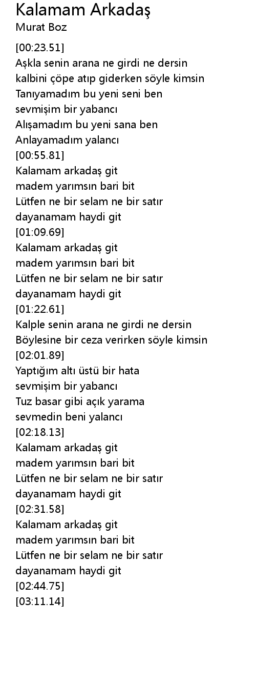 | [02:37.58] | Lütfen ne bir selam ne bir satır |