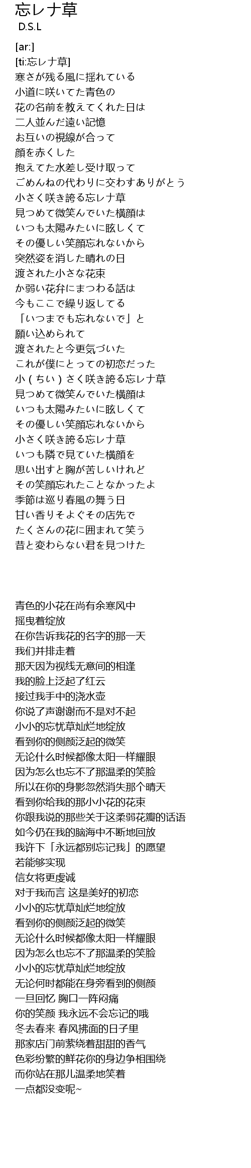 | [03:37.31] | 小さく咲き誇る忘レナ草 |