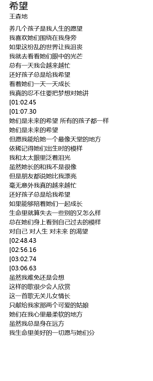 | [02:25.26] | 还好孩子总是给我希望 |
