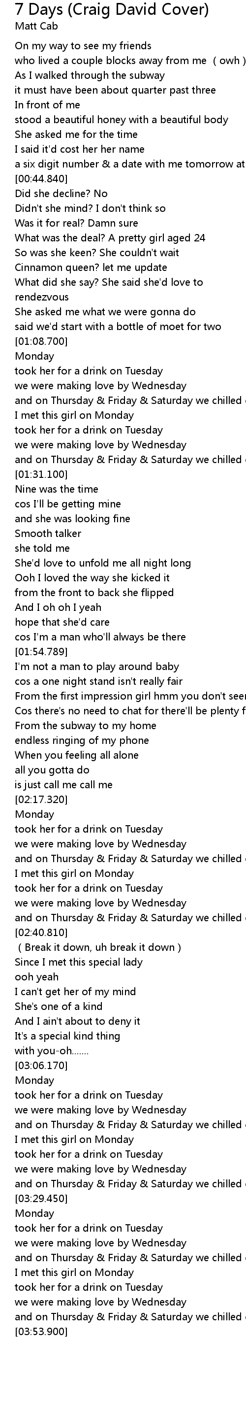 | [01:27.340] | and on Thursday & Friday & Saturday we chilled on Sunday |