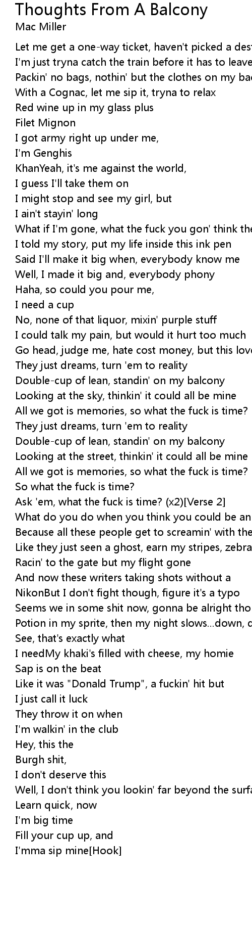 Double-cup of lean, standin' on my balcony |