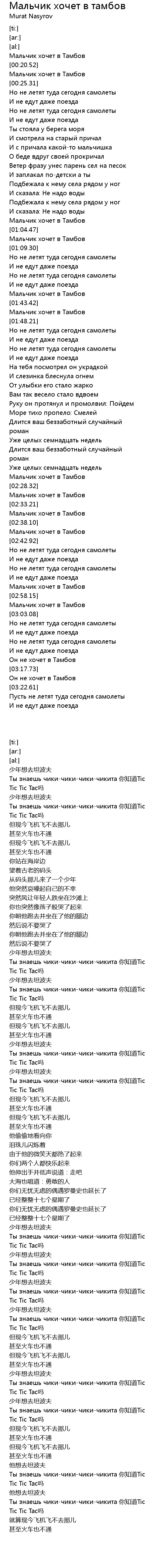 | [00:18.38] | Мальчик хочет в Тамбов |