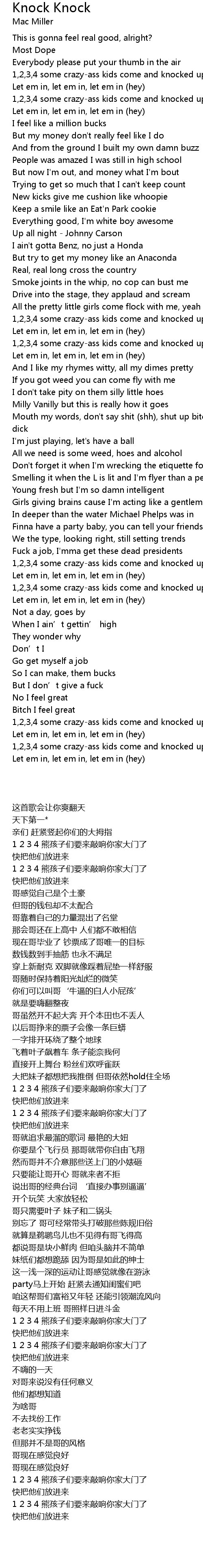 | [01:10.840] | 1,2,3,4 some crazy-ass kids come and knocked up on your door so |