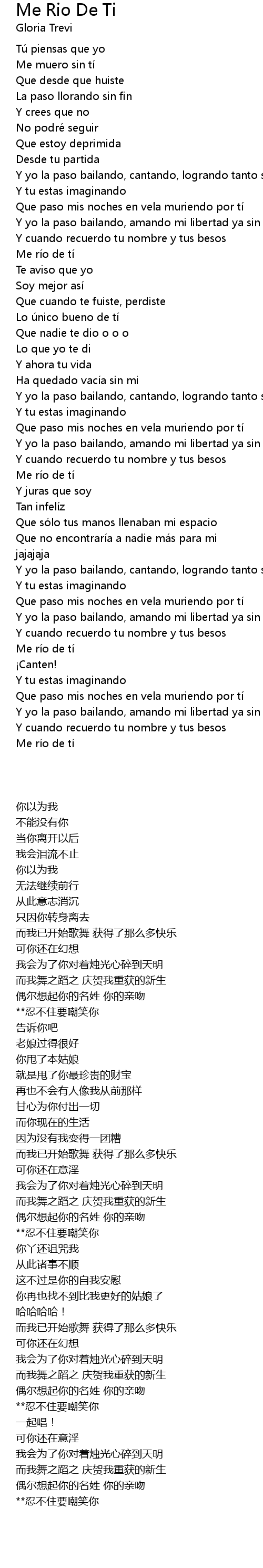 | 歌曲 | Me Rio De Ti |