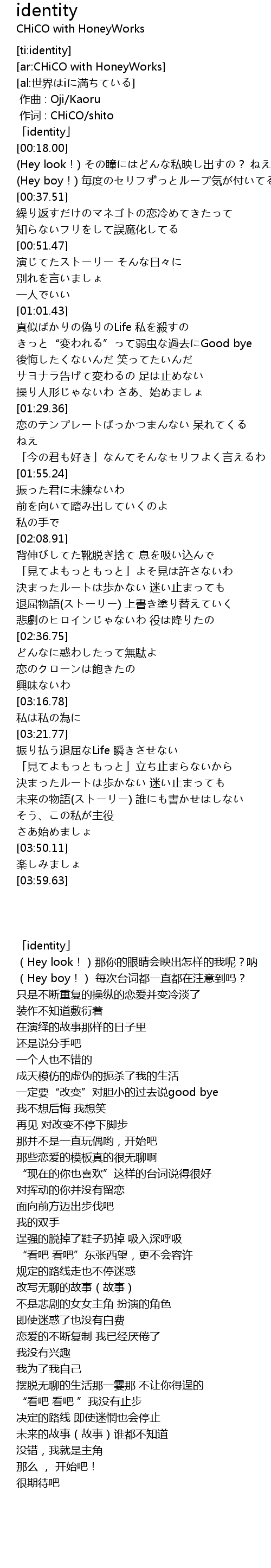 | [00:20.66] | (Hey look!)那你的眼睛会映出怎样的我呢?呐 |