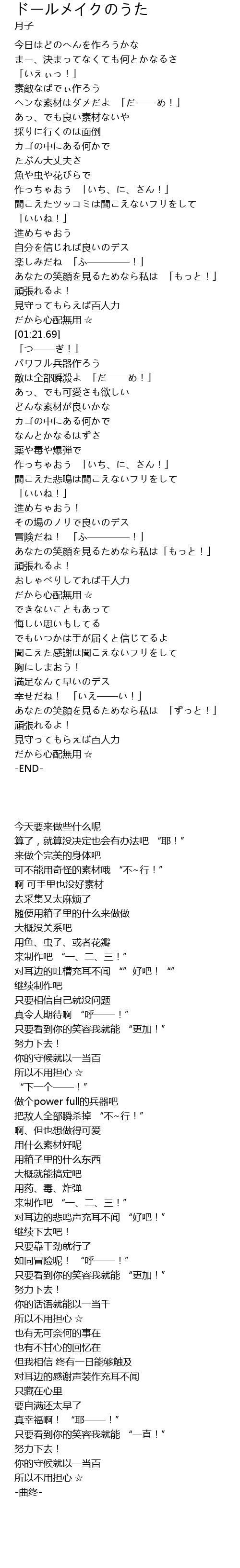 | 歌曲 | ドールメイクのうた |