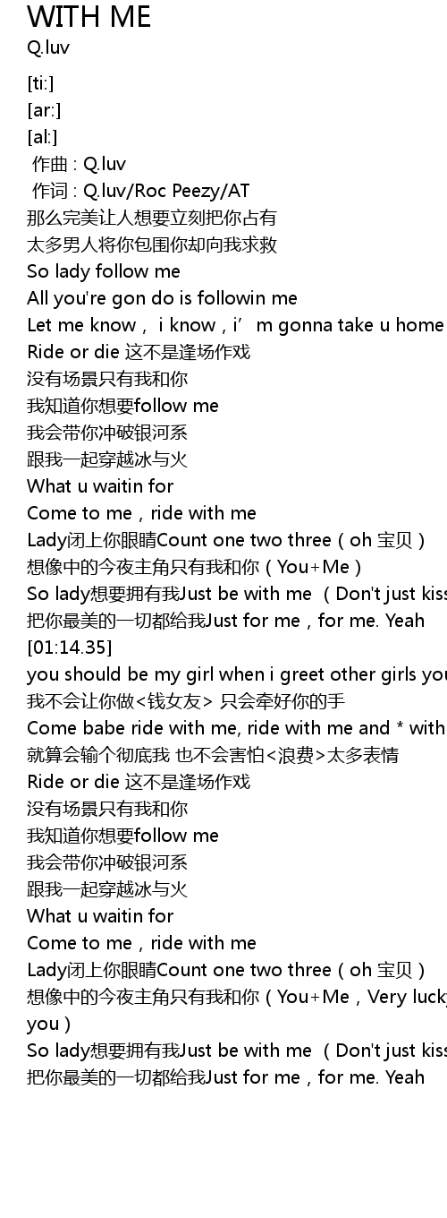 | [01:43.36] | Come babe ride with me, ride with me and with me |