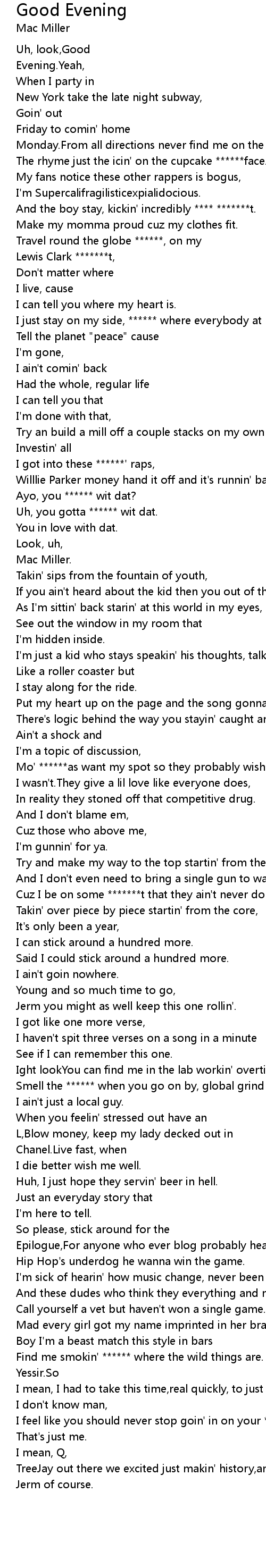 And the boy stay, kickin' incredibly **** *******t. |