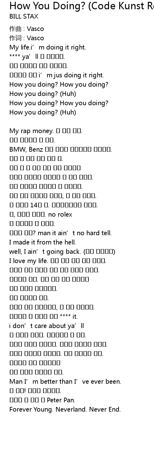 | 어떻게 지내? man it ain’t no hard tell. | |