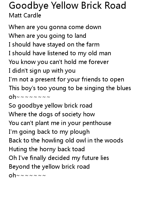 So goodbye yellow brick road |