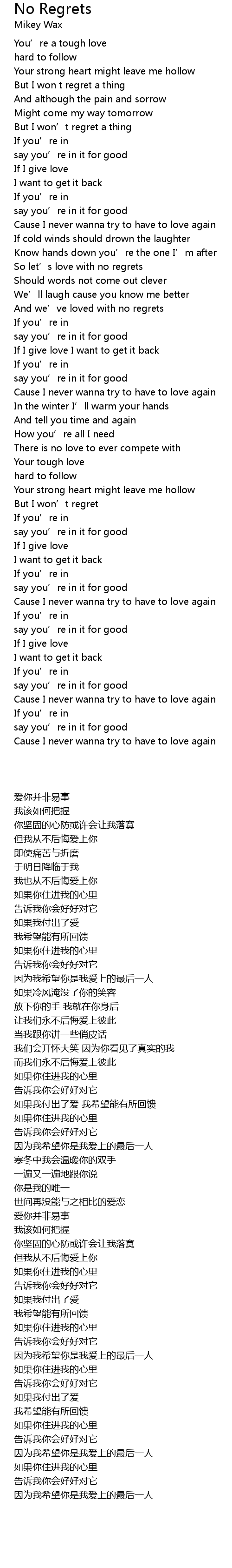 | [00:54.050] | So let' s love with no regrets |