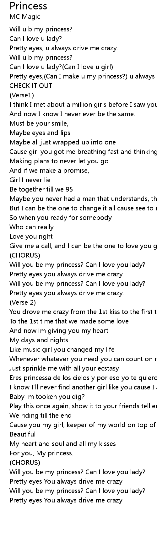 Will you be my princess? Can I love you lady? |