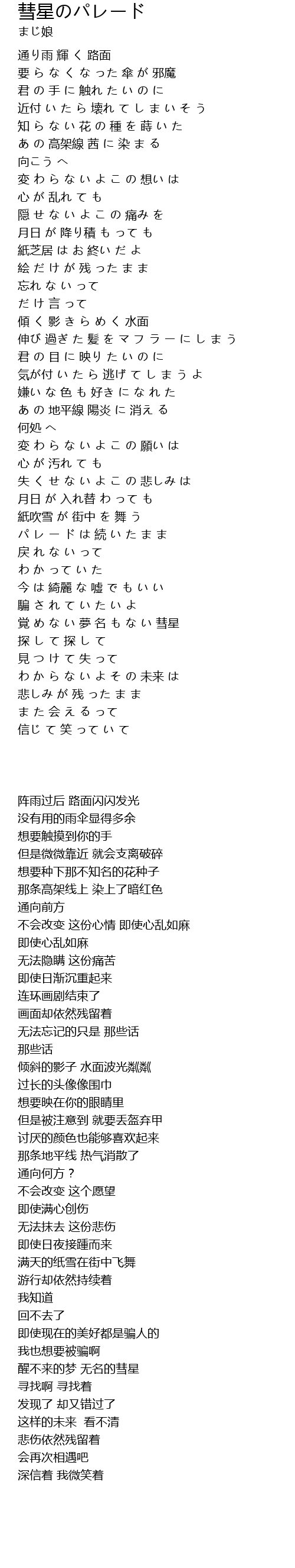| [02:36.86] | パ レ ー ド は 続 い た ま ま |