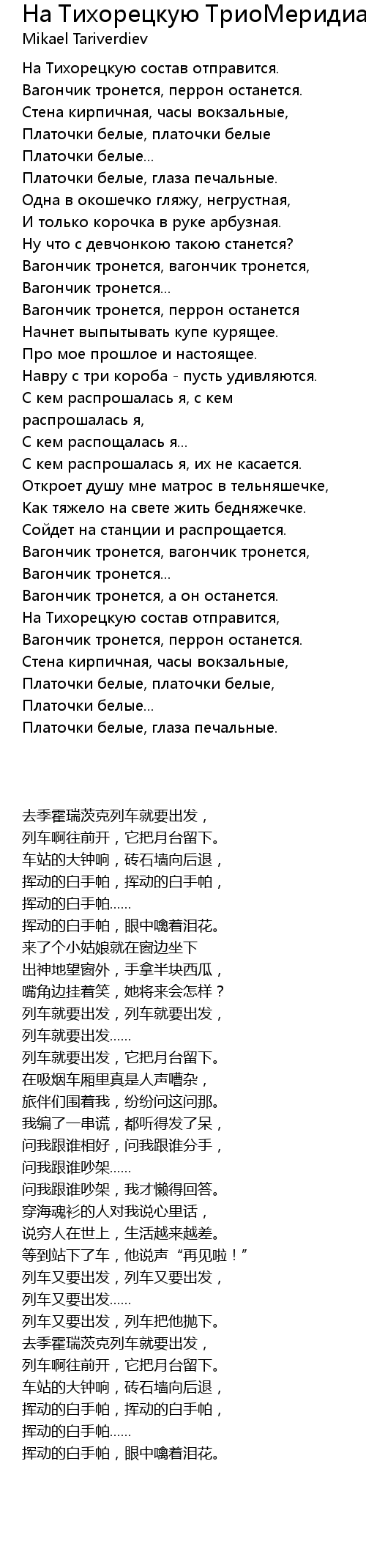 | [00:08.09] | На Тихорецкую состав отправится. |