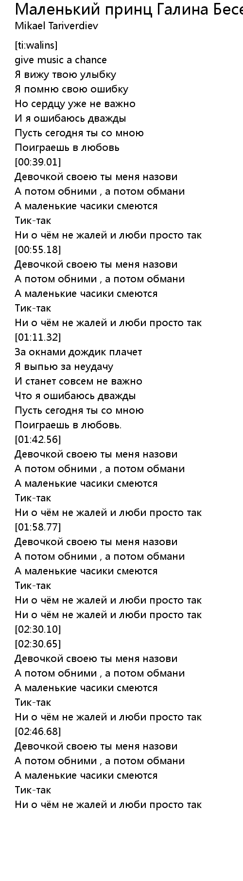 Маленький принц Галина Беседина, Сергей Тараненко 歌词