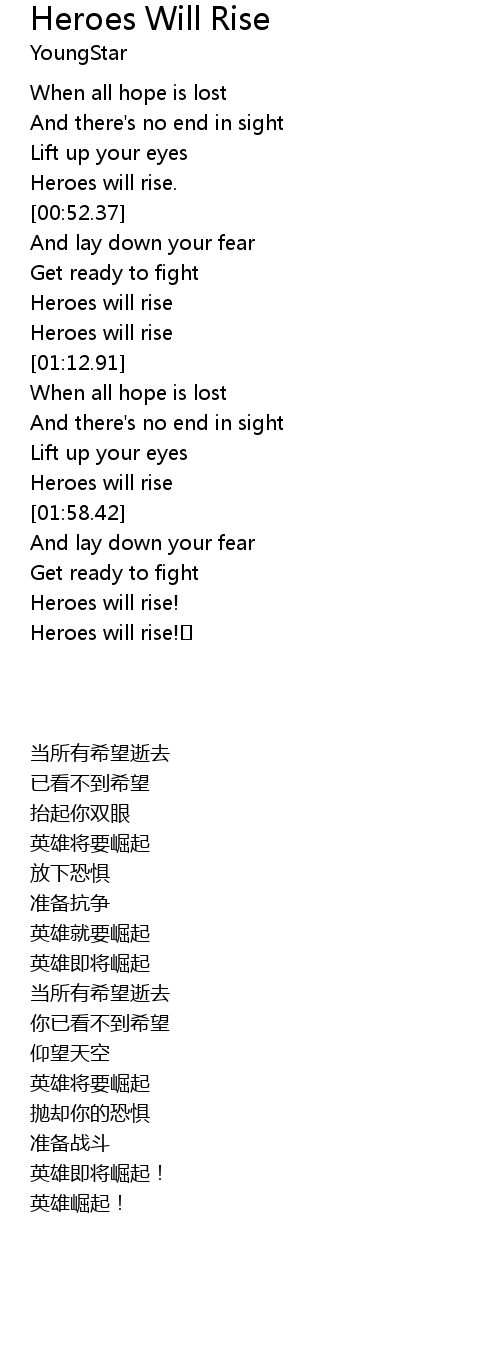 | [01:53.42] | Heroes will rise |