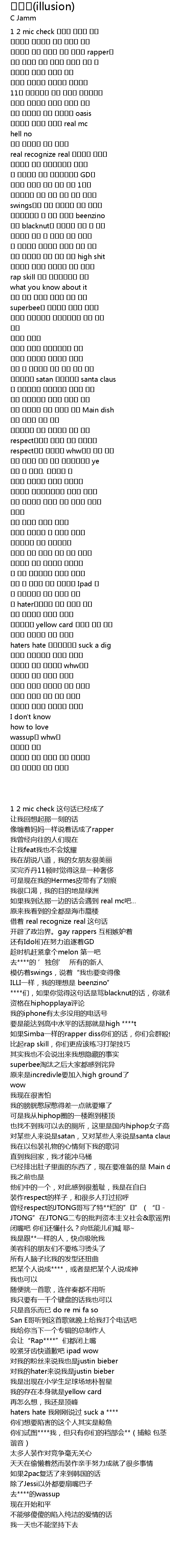 | [02:23.33] | 랩 병신 찌질이들이 다입을 닥치게 |