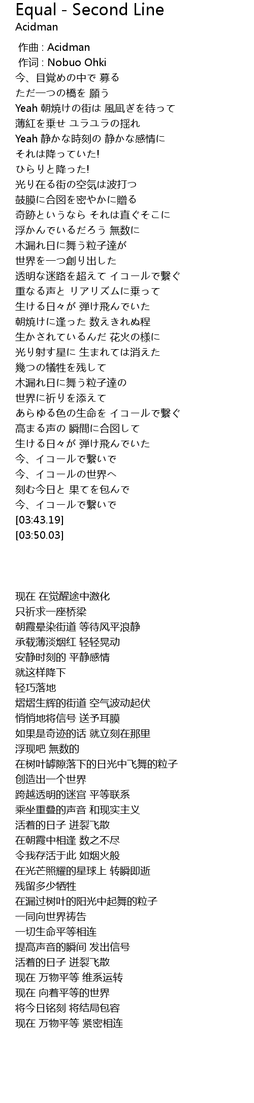 | [03:19.47] | 今、イコールの世界へ |